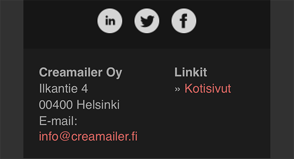 Seuraavaksi tarkastelemme Creamailerin edellistä uutiskirjettä tummassa tilassa.  Katsotaan ensin miltä viesti näyttää normaalisti.